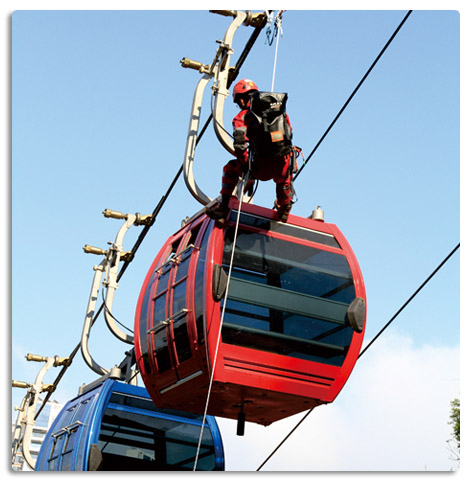 索道救援是指利用绳索将伤者或被困者从吊箱带到安全位置的技术系统。同时完成绳索救援还需要有完善的风险评估、合理的救援方案、以及过硬的操作技术。