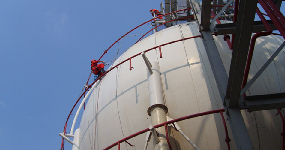 使用绳索技术对石油化工行业的设施的检验维修,是一种非常安全且有效的作业方法。 使用绳索技术对石化设施的检验维修可以有效的防止搭建脚手架对保温层及附属结构的破坏,且可以节省大量搭建和拆卸脚手架的时间。